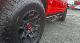 All-terrain tires on TRD black alloy wheels